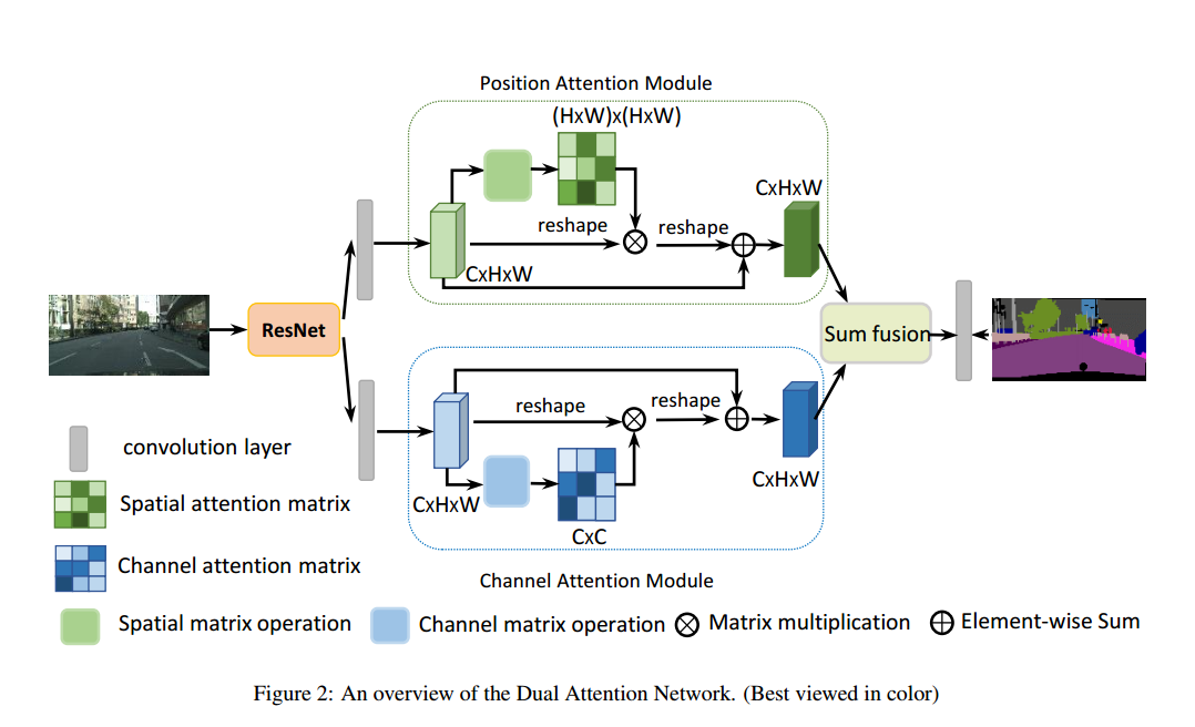 0. 前言 这篇文章的重点在于 dual attention 的作用,并且attention的使用和之前看到的 SE block 还不太一样。dual attention 主要解决了全局依赖性,即其他位置的物体对当前位置的的物体的特征的影响。重点不是场景分割,自己也不是很懂分割的代码和实现,暂时对分割不做过多研究。