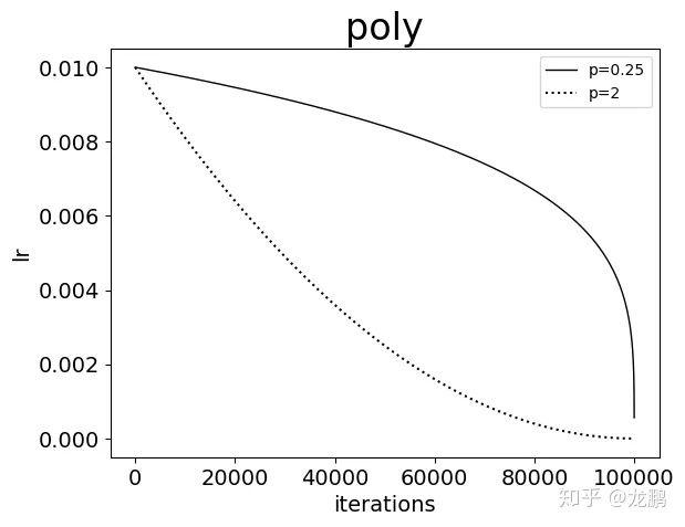 5.6 poly 其中,power需要设置,并且epoch为0时,lr是base_lr,当达到最大次数时,学习率变成0.
