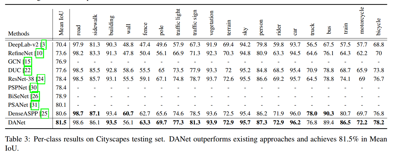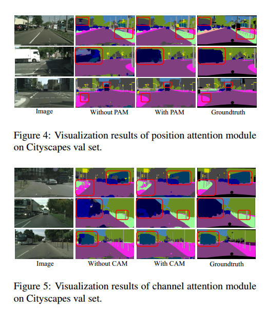 按照作者的说法,DANet 有两种作用:第一,可以避免显眼的大的物体的特征影响不起眼的小的物体的标签;第二,可以在一定程度上融合不同尺寸的物体的相似特征;第三,利用空间和通道的依懒性解决全局依赖问题。